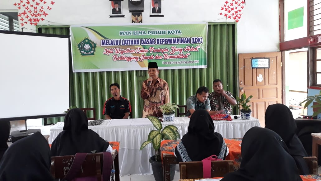Pelatihan ini diadakan pada hari Minggu tanggal 8 September 2019 berlokasi di MAN Lima Puluh Kota dengan kegiatan indoor dan outdoor yang dibuka  langsung oleh kepala MAN Lima Puluh Kota Bapak Intan Marajo, S.Pd dan disela sela kegiatan beliau menyampaikan bahwa kegiatan LDK ini merupakan modal dasar untuk pembentukan sikap dan psikomotorik siswa tingkat dasar sehingga bagi yang berpotensi dapat ditumbuh kembangkan untuk calon pemimpin agama, bangsa dan negara minimal untuk memimpin diri sendiri untuk menfilter arus globalisasi dan informasi yang semakin canggih demikian ulasan yang beliau sampaikan sambil berkenan membuka acara latihan dasar kepemimpinan ini yang mana pembukaan acara di akhiri dengan pengalungan tanda peserta pelatihan.